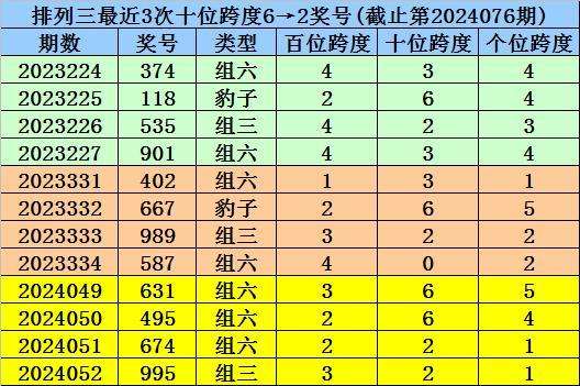 开奖回顾:第2024076期排列三奖号开出968,奖号奇偶比开出1:2,012路比开出2:0:1,跨度为3。