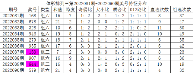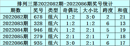 组选类型判断:最近5期排列三开出3次组六号码,本期重点关注组六号码出现。