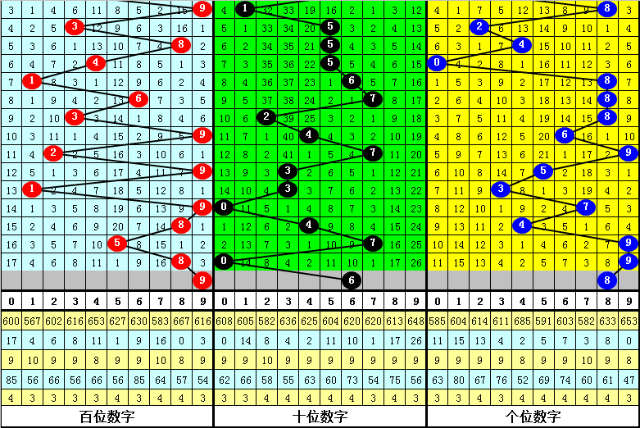 跨度分析:最近5期分别开出跨度:2、9、4、4、9,本期注意跨度走小,参考跨度3。