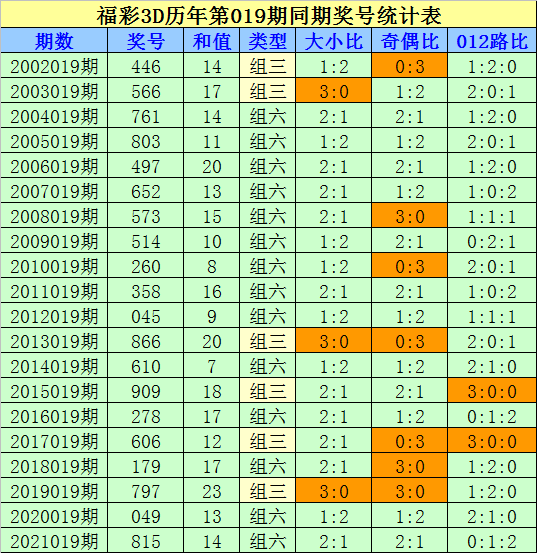 012路分析:上期012路比0:1:2,上期0路号码轮空,本期注意反弹,012比参考1:1:1。