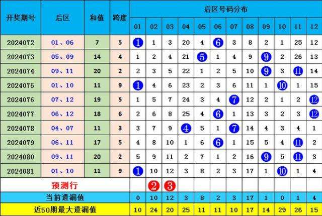 上期后区开出01 10