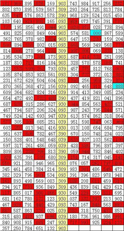 在以上统计表中,组选号码039开出之后,其下期组三号码出现11次,组六号码出现27次。其中,下期奖号有9期无重号,有29期开出重号,本期排除重号,看好开出组六号码。