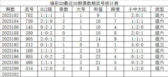 福彩3D最近20期偶数期奖号为: