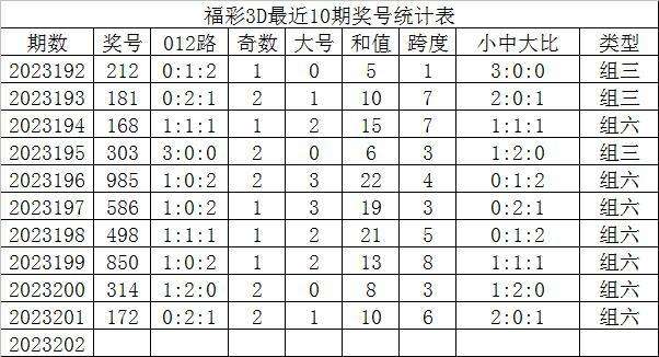 福彩3D第2023202期发哥推荐: