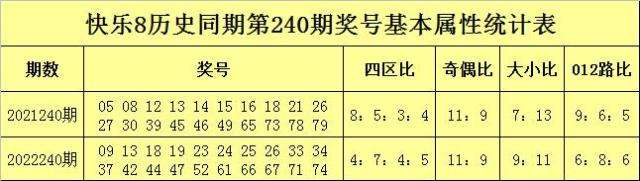 万妙仙快乐8历史同期第240期奖号基本属性分析