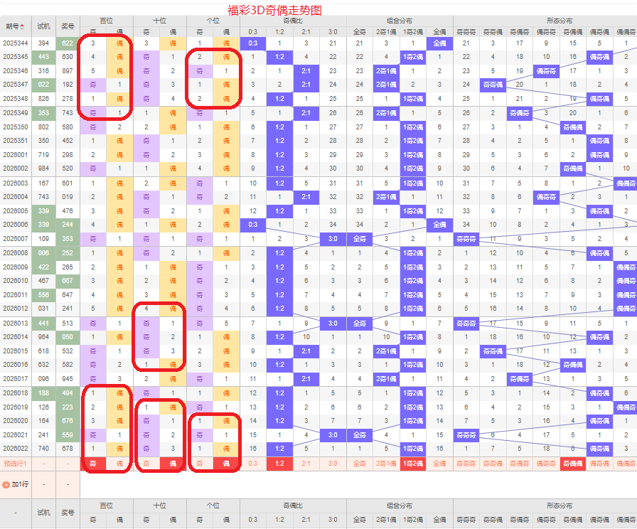 上期奇偶比是1:2,两偶的号码组合方式,从近五期的奇偶数出现情况看,奇数出现7次,偶数出现8次,奇数偶数号码出现较平均,本期侧重两偶的号码组合,侧重奇偶偶或奇偶奇的号码组合方式,根据奇偶形态做五码定位13579/02468/02468或13579/02468/13579