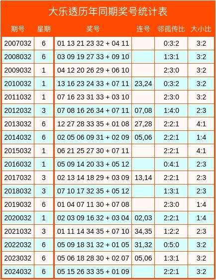 大乐透历年同期数据统计表