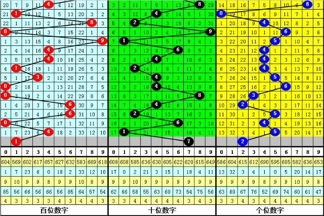 百位分析:上期出现号码4为:小号、合数,在连续9期开奖中,百位分别为:小号、合数:4;小号、质数:1;小号、质数:3;小号、合数:0;小号、合数:0;大号、合数:6;大号、合数:6;小号、合数:0;小号、合数:4,其中小号频次较少,质数开出较热,百位本期预计开出小号、质数。