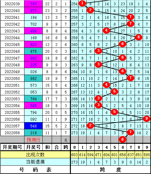 福彩3D第2022058期最大跨度开出7,近期最大跨度波动较大,本期预计最大跨度在4-8区段出现,最大跨度关注45678,精选跨度6。