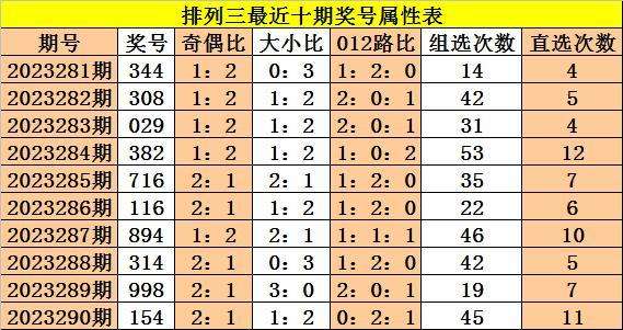 上期回顾:体彩排列三第2023290期奖号:154,奇偶比2:1,大小比1:2,012比0:2:1。