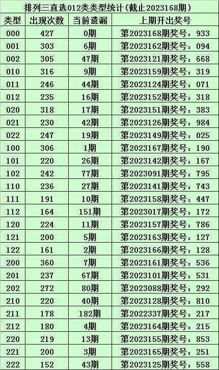上期回顾:体彩排列三第2023168期开出奖号:933,其012路比为3:0:0,奖号012路类型为:000。