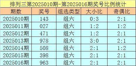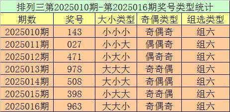 排列三第2025016期回顾:奖号963,奇偶比2:1,大小比2:1,和值18,类型:组六。