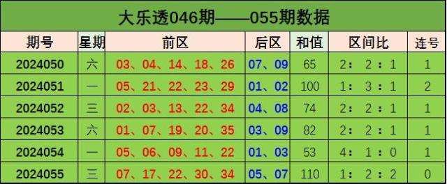 大乐透24055期开奖,本期奖号:前区07、17、22、30、34后区05、07;当期前区号码三区比为1:2:2,奇偶比为2:3。形态方面,前区未开出连号;开出重号22。