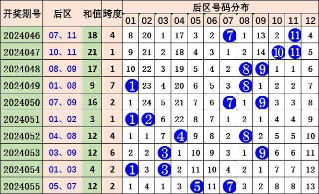 最近5期后区号码奇偶比为7:3,奇偶走势为:奇偶-偶偶-奇奇-奇奇-奇奇,