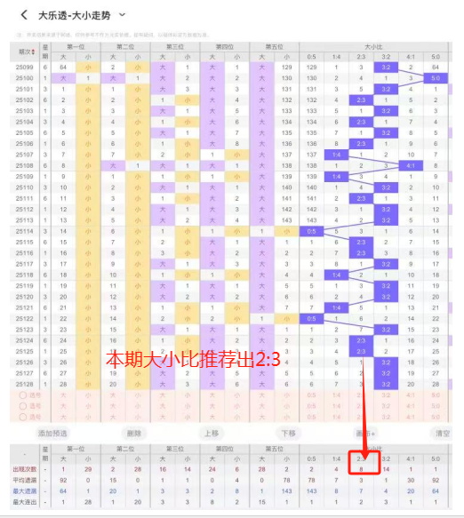 6、大小比:上期开出大小比为:3;2,近85期开出4:1出现19次,3:2出现35次,2:3出现45次,1;4出现27次,5:0出现3次,本期推荐出2:3。