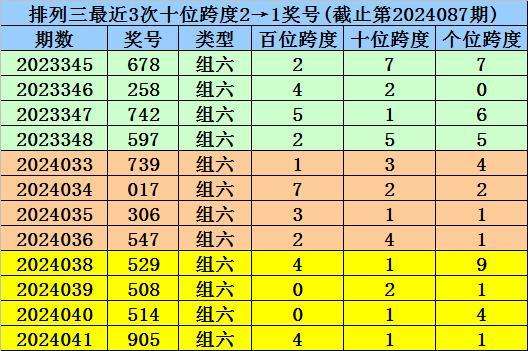 第2024031-第2024033期奖号:682、805、739,其下期奖号为:017,首位号码跨度为7;
