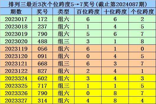 第2023324-第2023326期奖号:602、717、790,其下期奖号为:314,末位号码跨度为4;