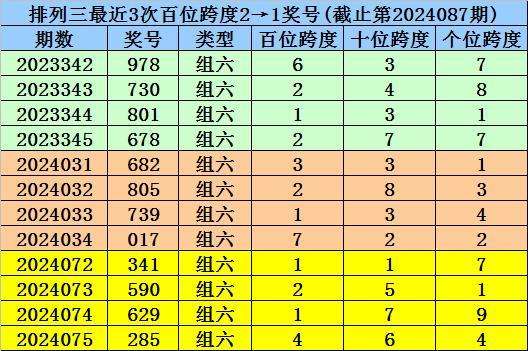 第2024072-第2024074期奖号:341、590、629,其下期奖号为:285,首位号码跨度为4;