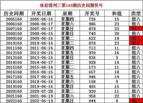2023年6月19日排列三第160期开奖,历史同期分别开出奖号: