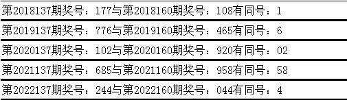 与前期历史同期奖号对比分析,在最近五年开奖中,第137期同期奖号与第160期同期奖号都出现了相同号码:
