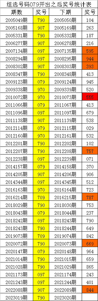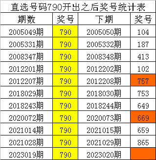 从上表统计可以看出,直选号码790开出之后,其下期奖号: