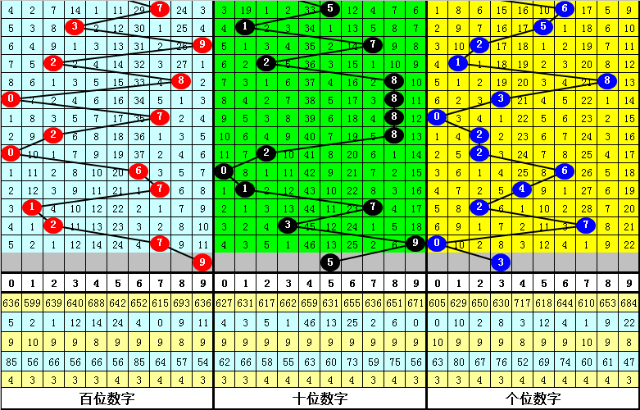百位号码奇偶比为5:5,奇偶号码出现比例相当,本期防止开出奇数号码;大小比为6:4,大号走势较热,本期防止大号再次出现。