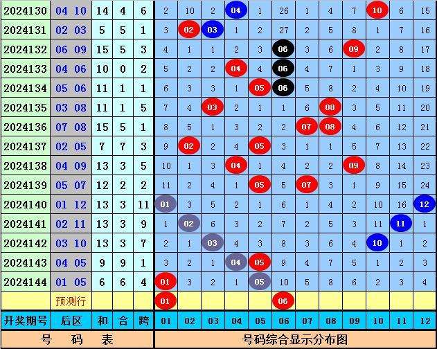 后区分析:上期后区开出1路+2路号01和05,最近30期后区奖号012路比为13:23:24,最近10期后区奖号012路比为4:7:9,本期后区注意号码01、06、07、08、09,单挑两码组合01、06。