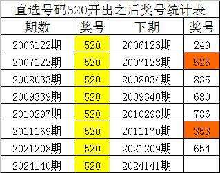 从上表统计可以看出,直选号码520开出之后,其下期奖号: