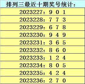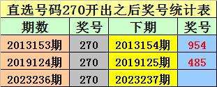 上期回顾:排列三第2023236期开奖号码为270,历史上组选出现28次,直选出现3次。