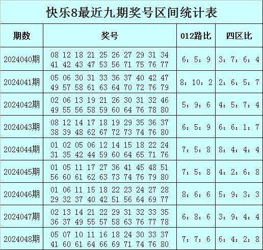 快乐8第2024049期区间分析
