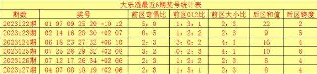 大乐透第2023127期奖号为:04、07、08、18、19+02、06。其中前区奇偶比为2:3,大小比为2:3,前区奖号小奇、小偶、大奇、大偶个数比为1:2:1:1,后区开出全偶组合。