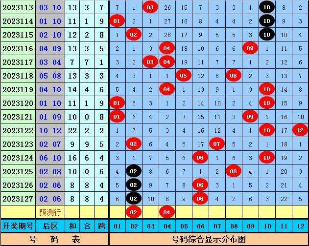 后区分析:上期后区开出全偶组合02和06,近20期后区奖号奇偶比为12:28,近6期后区奖号奇偶比为1:11,本期后区看好再出全偶组合,参考号码02、04。