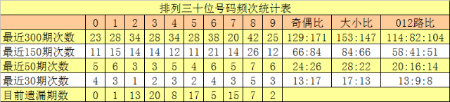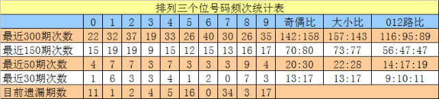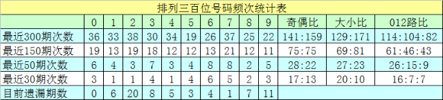上期回顾:排列三第2023062期开出奖号006,号码012路比为3:0:0,奇偶比为0:3,大小比为1:2,和值为6,跨度为6。