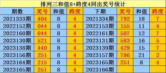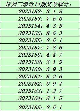 上期回顾:排列三第2023165期奖号:251。和值8,跨度4。