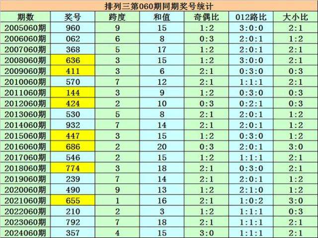 上期回顾:排列三第2024060期奖号为357,组选类型为组六,奖号大小比为2:1,012路比为1:1:1,奇偶比为3:0。