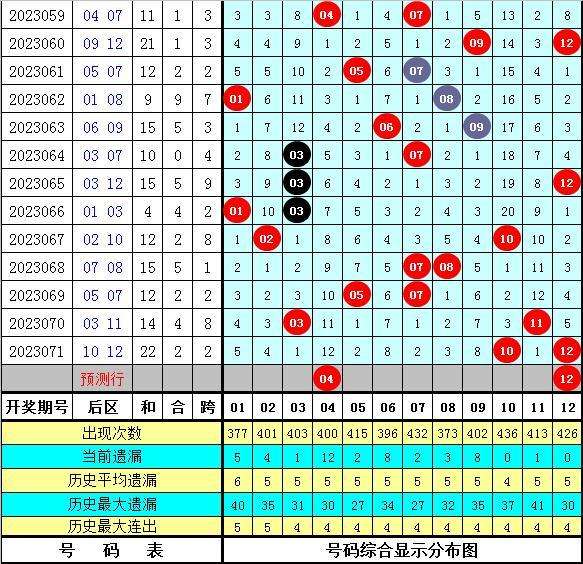 后区号码分析:在前7周星期一开奖中,后区奇偶号码个数比为11:3,奇数号码走势较热,后区大小号码个数比为8:6,大小号码开出个数基本持平,本期预计后区开出全偶号码,关注号码04、06、10、12,精选两码04、12。