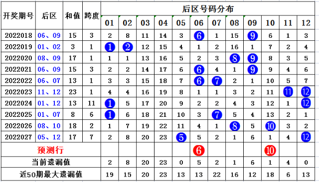 后区走势分析:上期开出号码05 12,为奇偶形态,近10期后区奇奇形态1次,奇偶形态4次,偶奇4次,偶偶1次。奇偶、偶奇走势较热,本期推荐偶偶形态开出。推荐号码06 10。