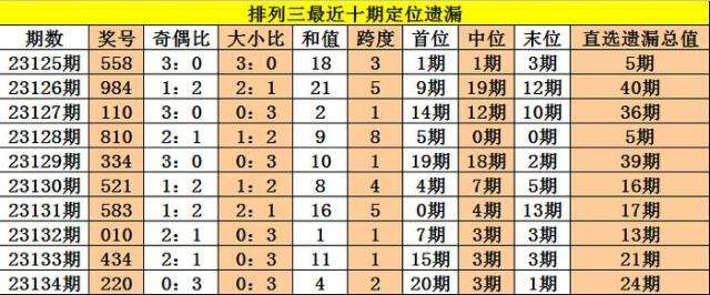 开奖回顾:排列三第2023134期奖号:220,定位直选遗漏值20期、3期、1期,遗漏总值为24期。