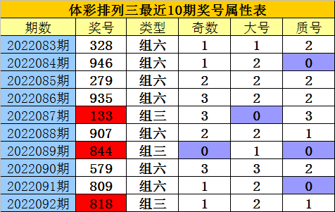 开奖回顾:排列三上期开奖号码为:818,大小比为2:1,奇偶比为1:2,质合比为1:2。