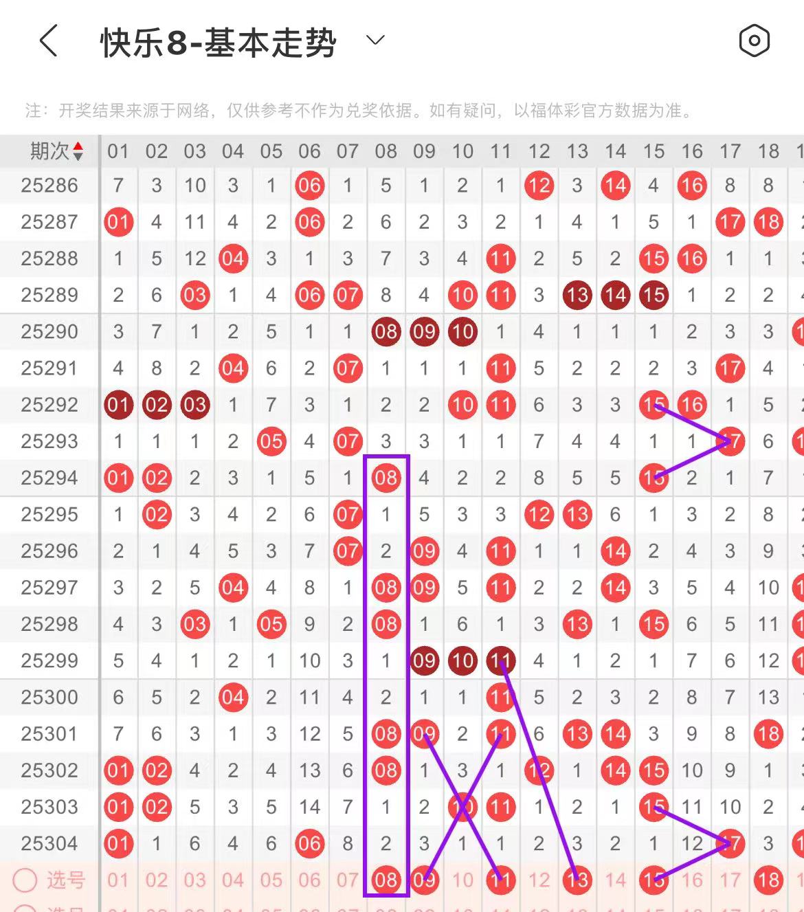 01-10区:本区间上期开出了两个号码,从号码走势图上看,该区现属于温号区,出号个数保持在两个号码左右,本期出号个数变化不大,重点关注后半区号码回补。本期有出号走势的号码有08号,形态对应出号走势,09号,斜连出号走势。
