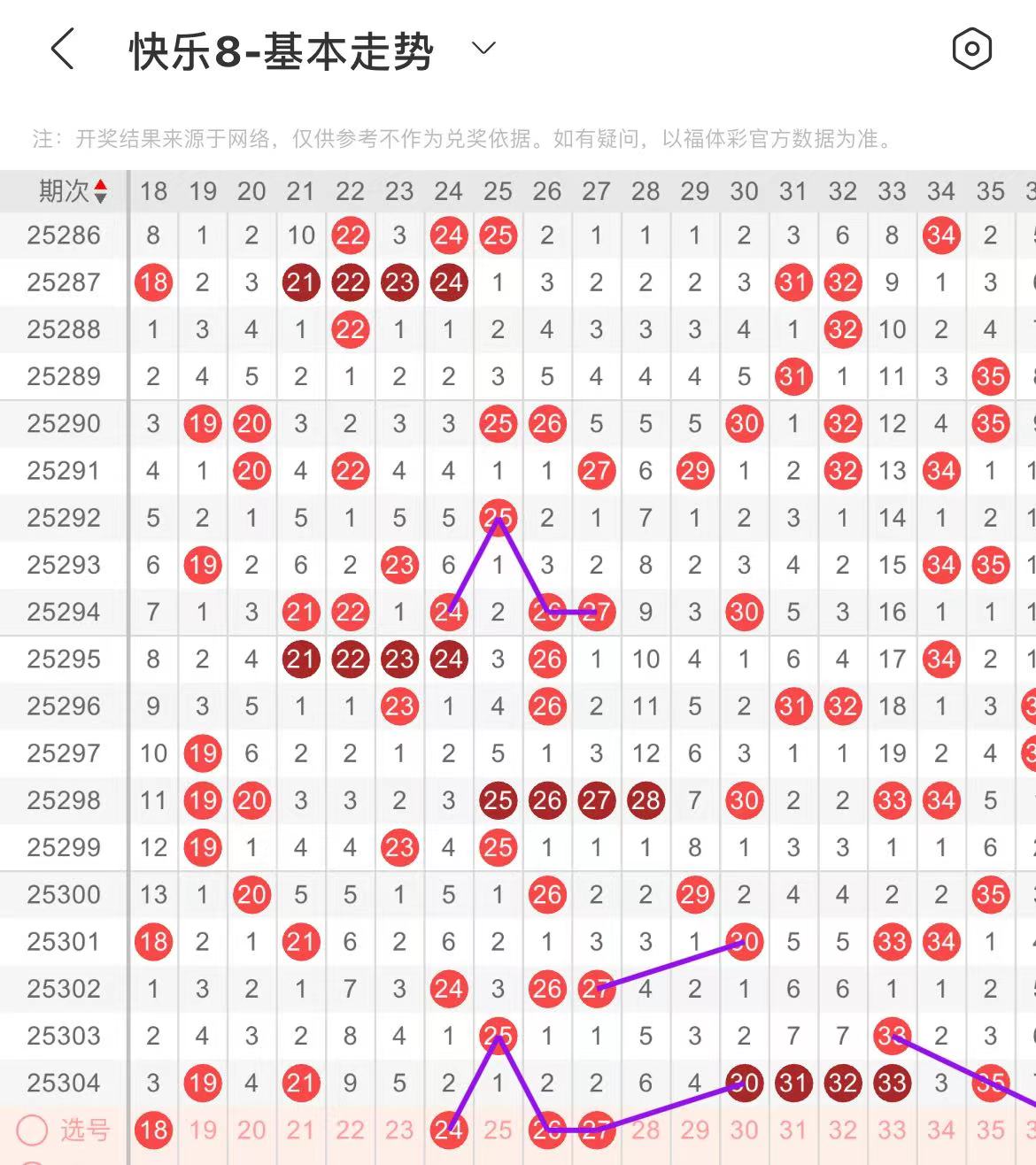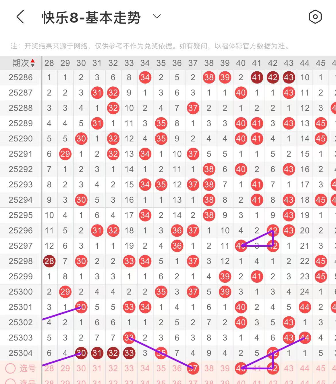 21-30区:本区间上期开出了两个号码,从号码走势图上看,本期重点关注区中号码回补,出号个数在三个号码左右。本期有出号走势的号码有24.26号,隔期分边出号走势,防26.27同出的可能。