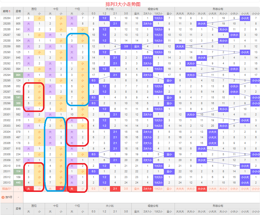 个位近三期是小号码,侧重奇数的号码,侧重0路和2路的号码,侧重大号码,侧重号码259。
