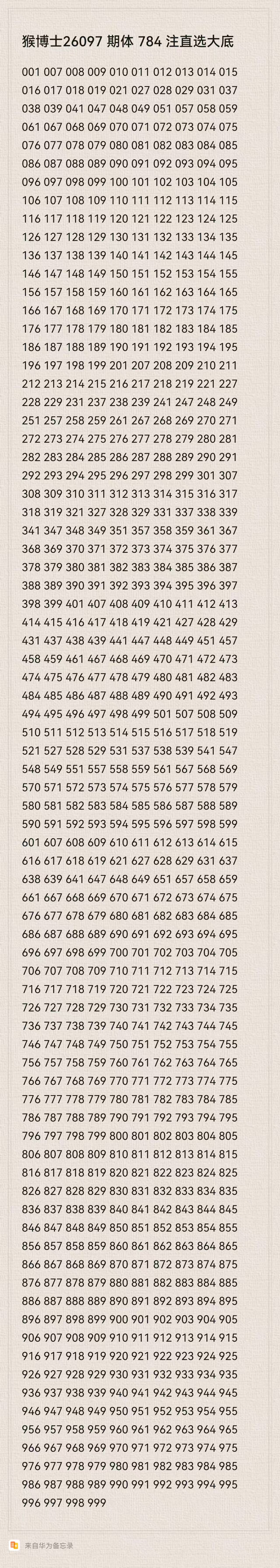 猴博士26097期排列三784注直选大底:(可以当母底用,然后进行缩水)