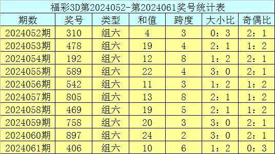 开奖回顾:福彩3D第2024061期奖号:406。