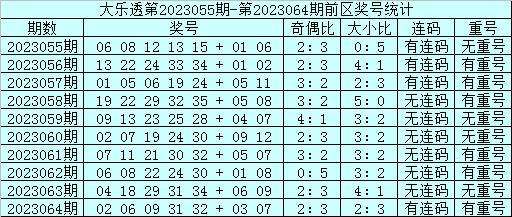 上期回顾:体彩大乐透第23064期奖号开出:02 06 09 31 32+03 07,前区奖号奇偶比为2:3,012路比为2:1:2,大小比为2:3,包含连码:31 32,包含1个重号:31。