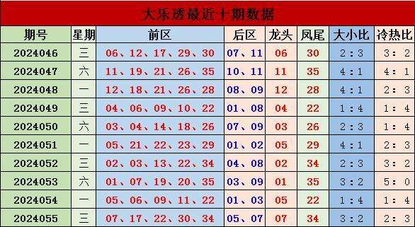 上期回顾:大乐透第2024055开奖,本期奖号:前区07 17 22 30 34;后区05 07。当期前区号码大小比为3:2,三区比1:2:2,奇偶比2:3。前区未开出连号,开出重号22。