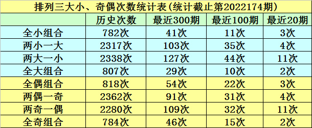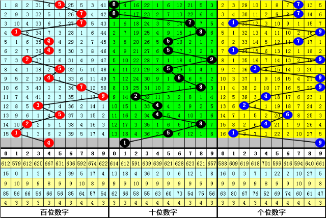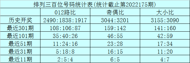 3、在以上0-9号码频次中,号码大小比为25:25,012路比为21:13:16,本期预计百位开出1路号码,参考号码4。