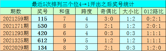 1、排列三前两期个位分别开出号码4和1,历史上个位号码连续两期分别出现4和1时,共有76次。在最近5次出现时,其下期分别出现号码:115、530、420、612、134;