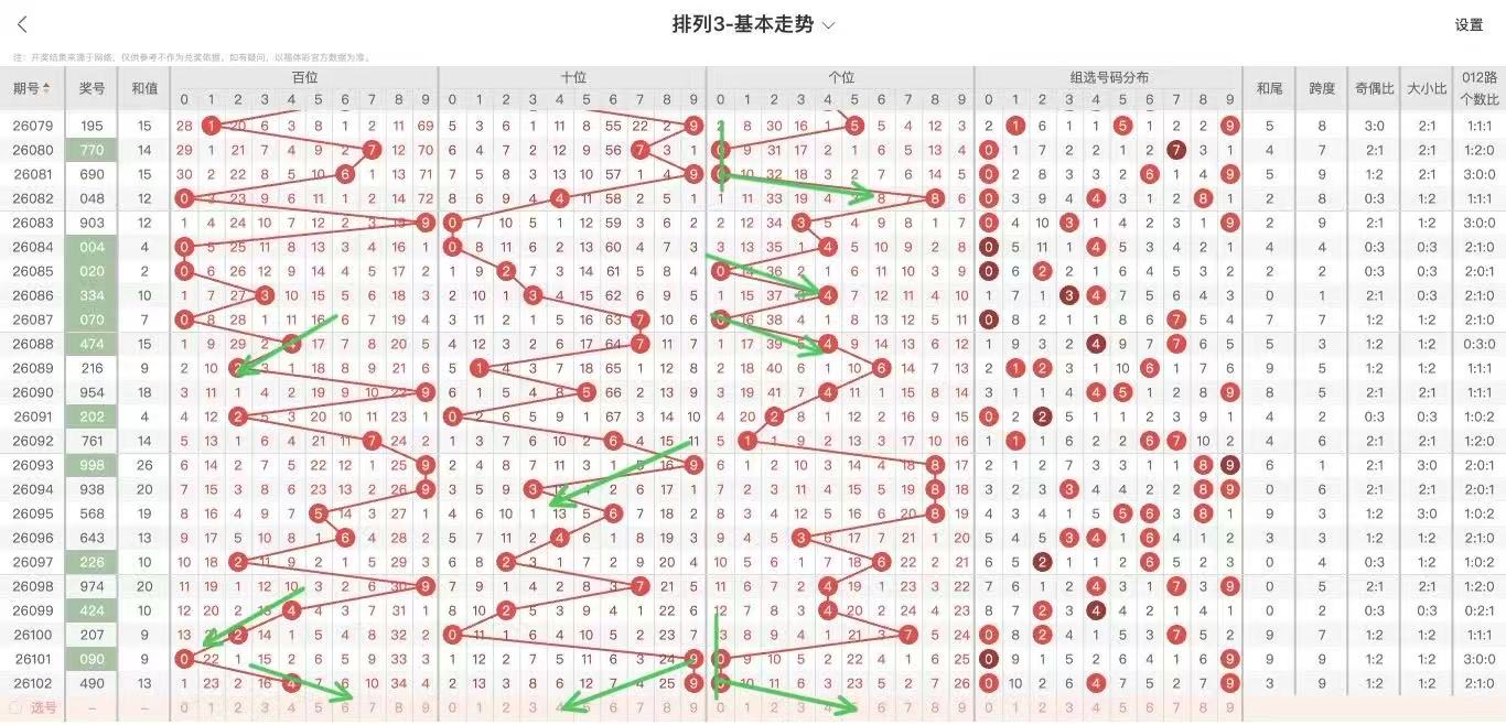 十位:上期热号9,目前十位遗漏最多的号码是8共遗漏25期进入冷号,近百期号码9在十位开出14期,下期走势:4 6 6 8 1 7 9 3 0 7 4 3 9近十期十位走势为: 9 3 6 4 2 7 2 0 9 9其中5期为奇占比百分之五十,5期为小占比百分之五十,而近期大号较热4开出后下期喜落小号,所以本期十位喜好开出小,范围:23467