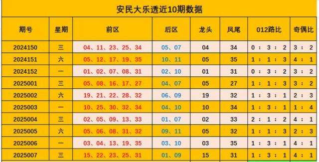 龙头凤尾:上期龙头开出15,近10期龙头有7期集中在01-07,本期预测龙头继续关注01-07之间,龙头推荐02,上期凤尾开出31,近10期凤尾有9期集中在30-35,本期凤尾推荐32。